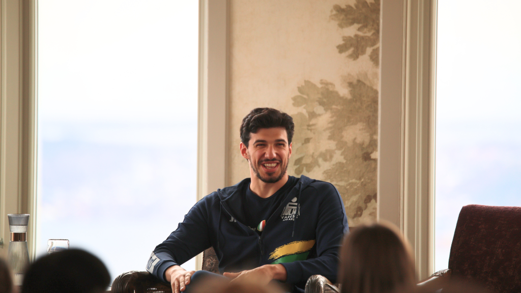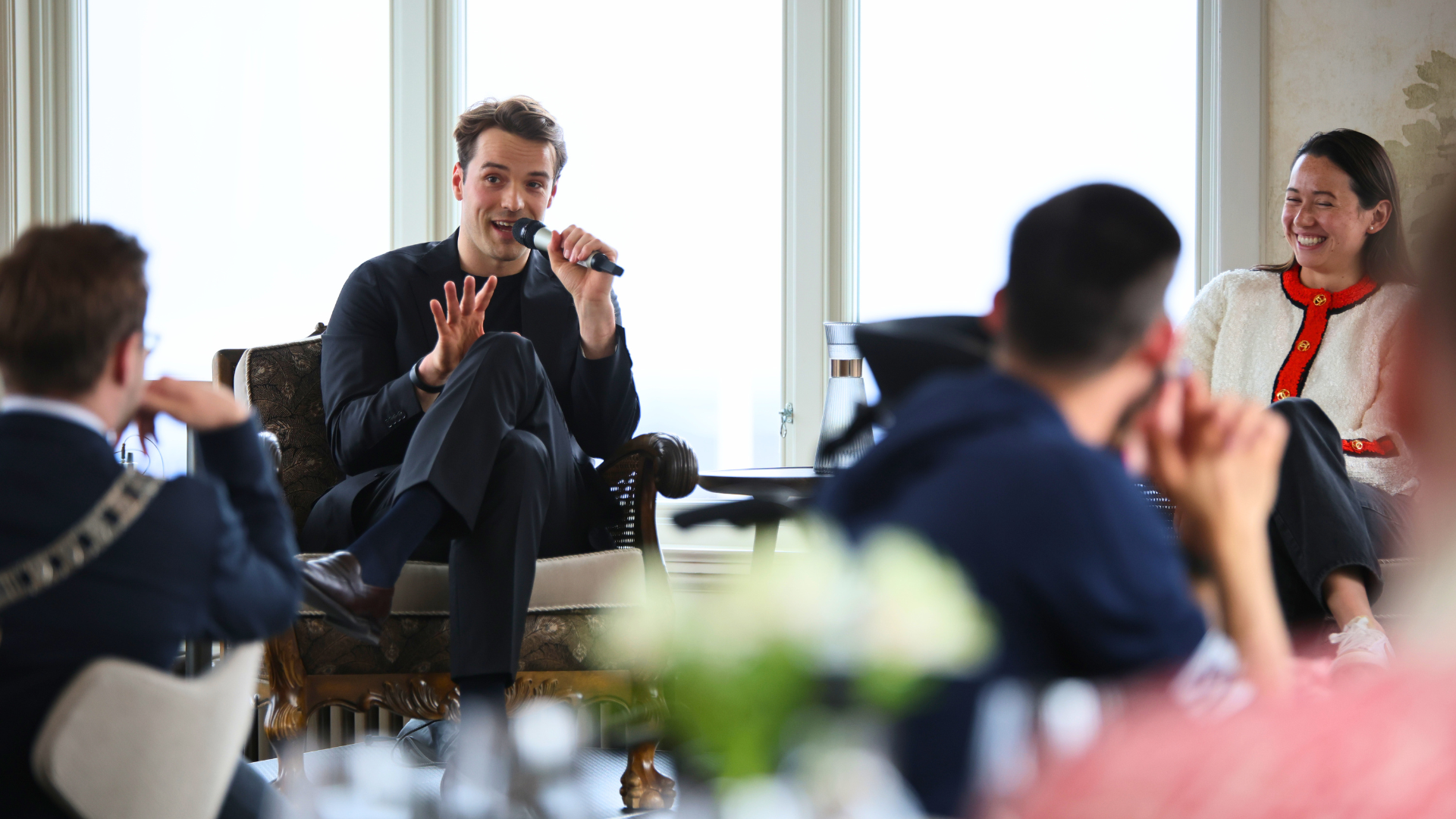 Daglig leder i Stevne Bergen og tidligere landslagsutøver, Markus Lie, ledet en uformell sofaprat med flere av utøverne – en unik mulighet for de fremmøtte til å bli bedre kjent med noen av verdens beste svømmere før helgens konkurranser.