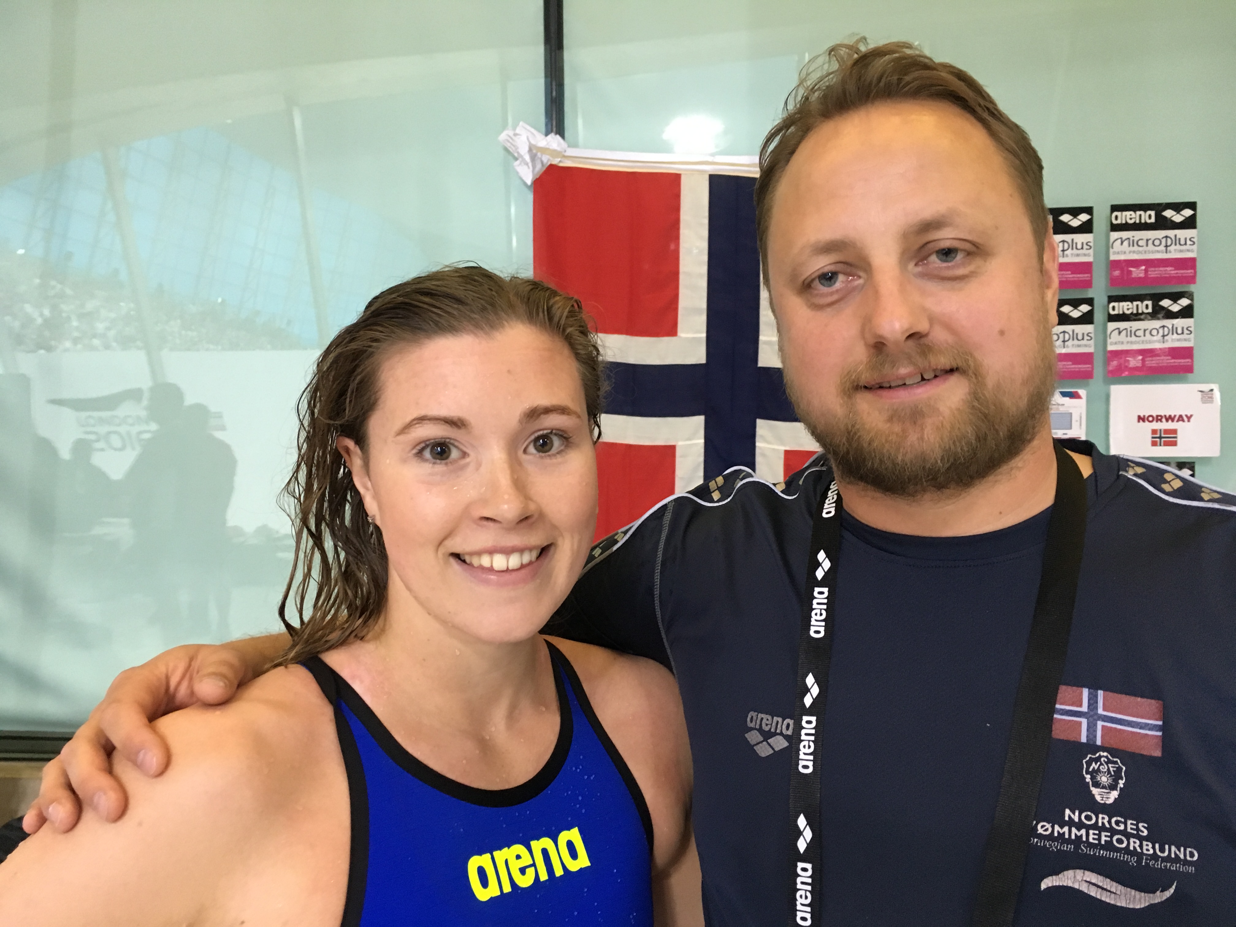 - Stina Kajsa og trener Joacim etter semi på 200m bryst